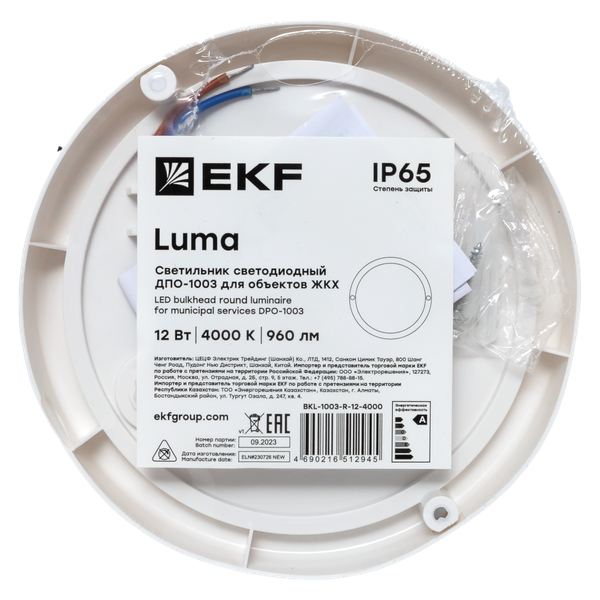 Светильник светодиодный ЖКХ круг ДПО-1003 12Вт 6500K IP65 LUMA EKF