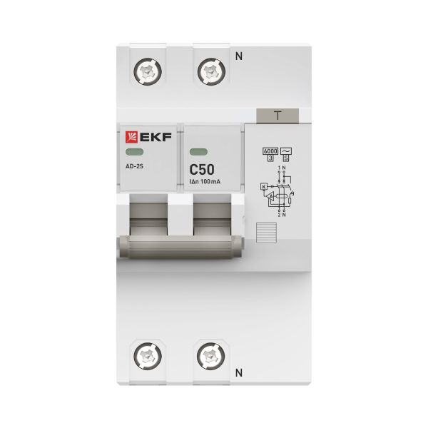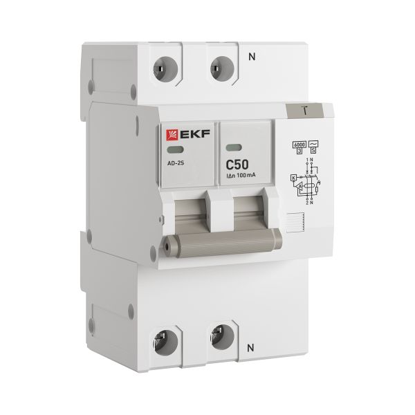 Автоматический выключатель дифференциального тока АД-2 2Р (S) 50А характеристика C 100мА тип АС электронный селективный 6кА PROXIMA EKF