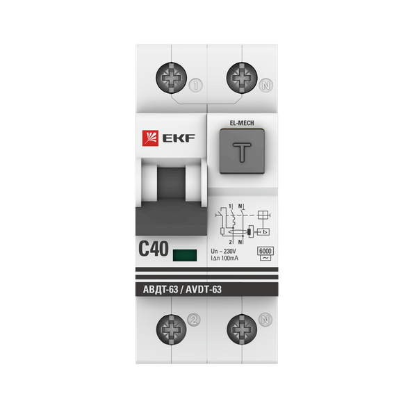 Автоматический выключатель дифференциального тока АВДТ-63 1P+N 40А характеристика C 100мА тип AС электромеханический 6кА EKF PROXIMA