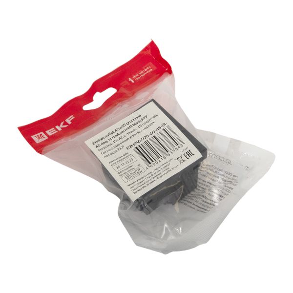Розетка 45x45 с зазем. 45 градусов, быстрозажимные клеммы, черная, матовая EKF