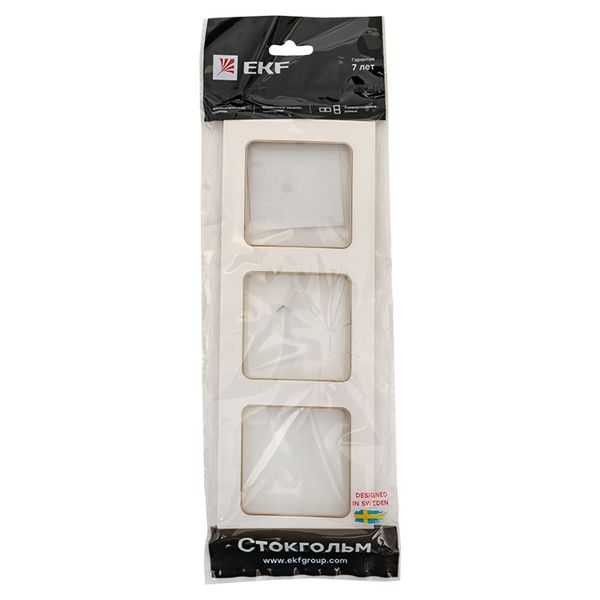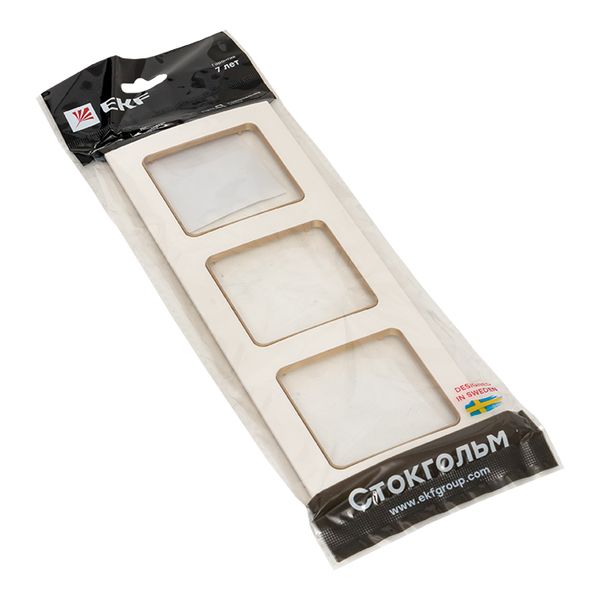 Стокгольм Рамка 3-местная белая с линией цвета шампань EKF