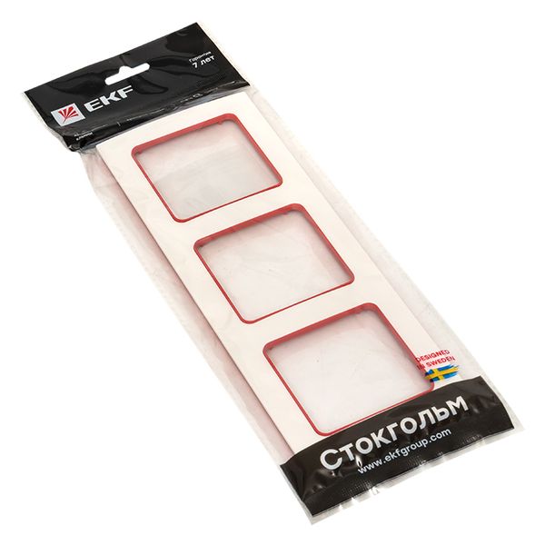 Стокгольм Рамка 3-местная белая с линией цвета красный EKF