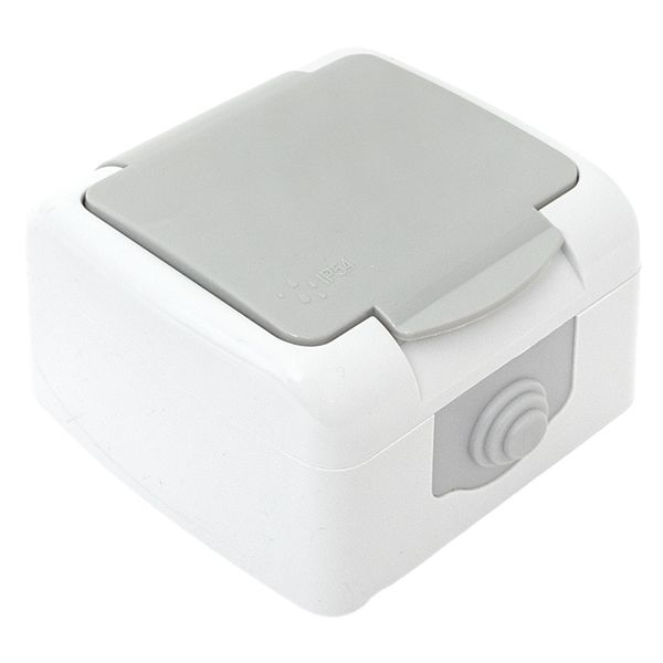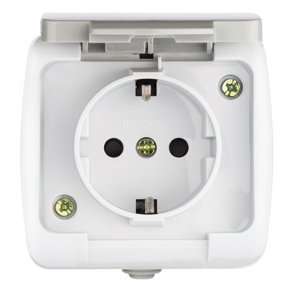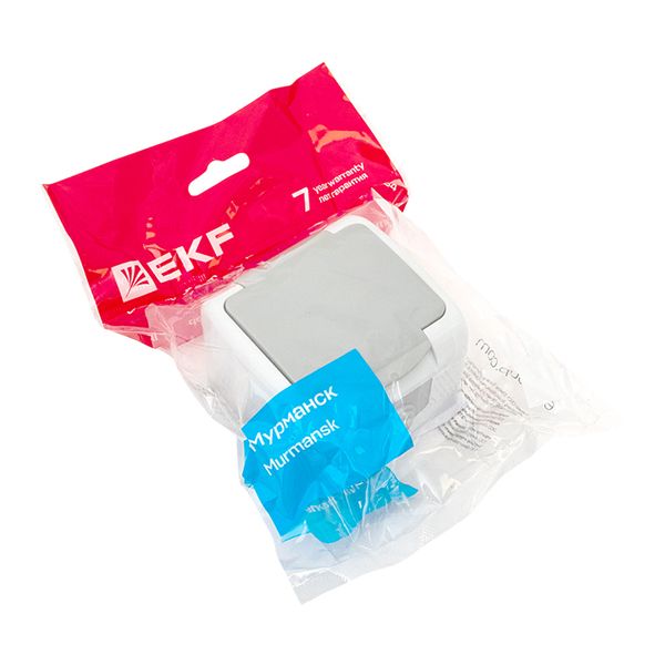 Мурманск Розетка 1-местная 16А с заземлением с крышкой IP54 серый с защитными шторками EKF