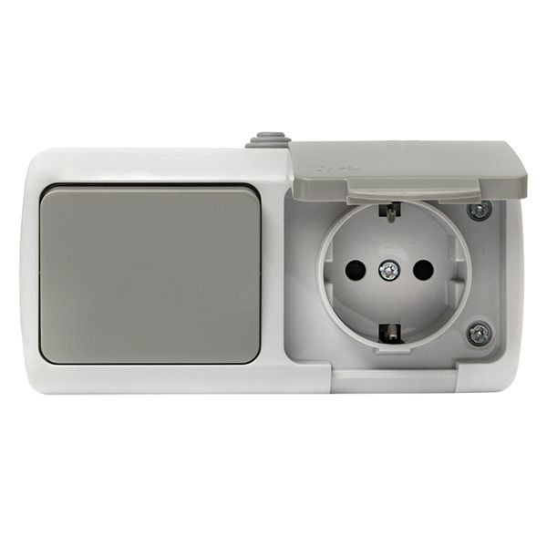 Мурманск Блок розетка 1-м 16А с заземлением с крышкой+ 1-кл выключатель IP54 серый EKF