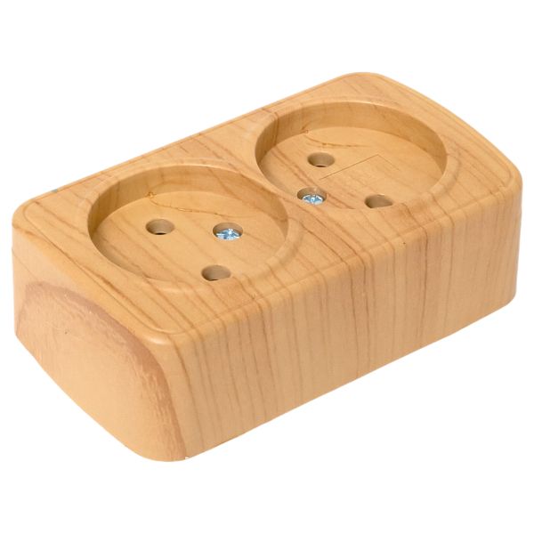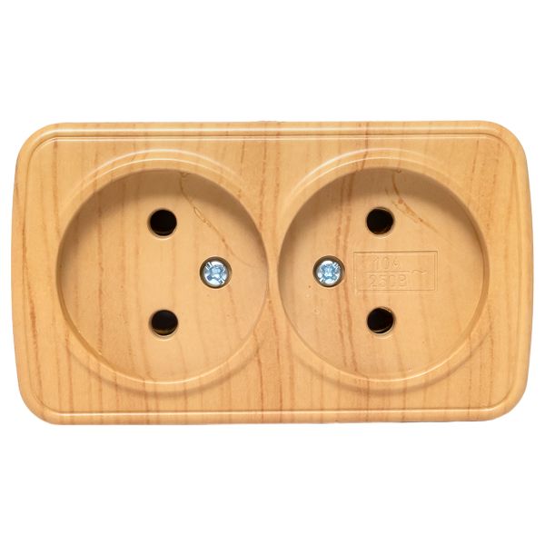 Розетка 2-местная ОП Минск 10А без заземления светлое дерево EKF