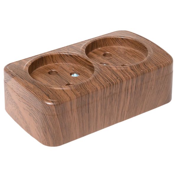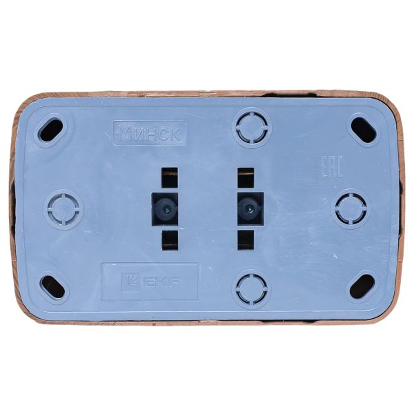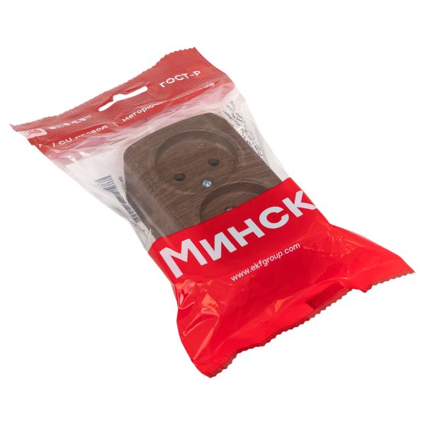 Розетка 2-местная ОП Минск 10А без заземления тёмное дерево EKF