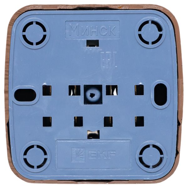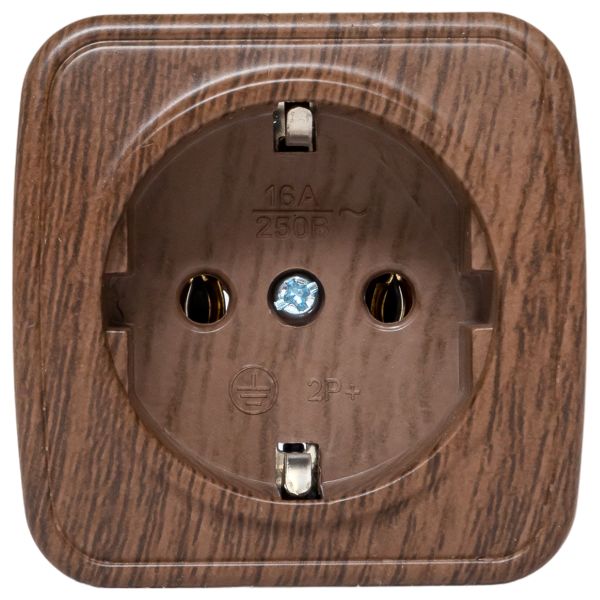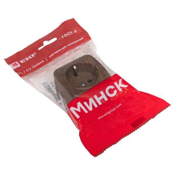 Розетка 1-местная ОП Минск 16А с заземлением тёмное дерево EKF