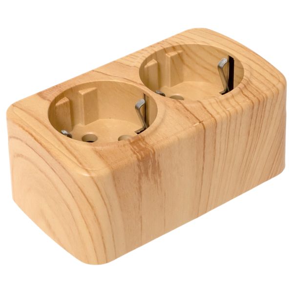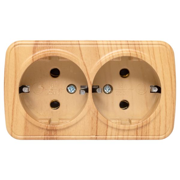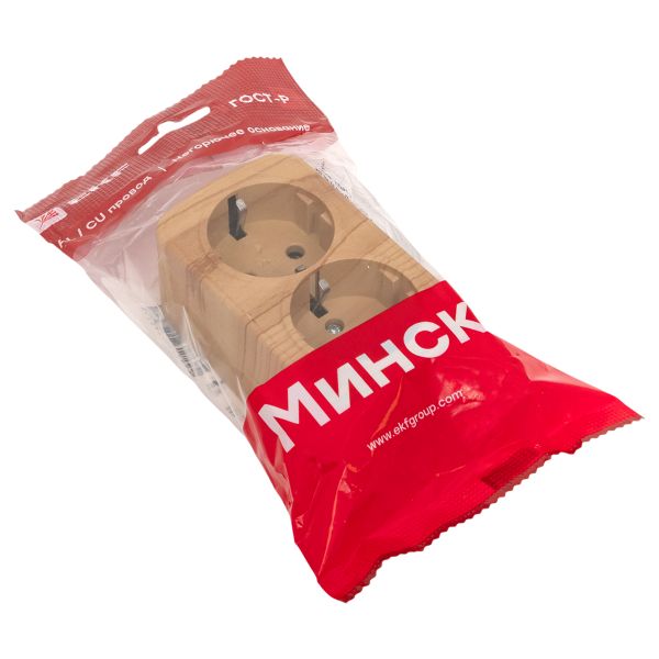 Розетка 2-местная ОП Минск 16А с заземлением светлое дерево EKF