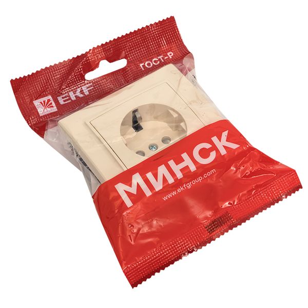 Розетка 1-мест. СП с/з 16А бежевый с защ. штор. Минск EKF