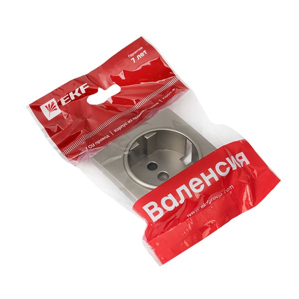 Лицевая панель одноместной розетки EKF серии Валенсия устанавливается на соответствующий механизм. Панель выполнена из поликарбоната, устойчивого к ультрафиолетовому излучению.