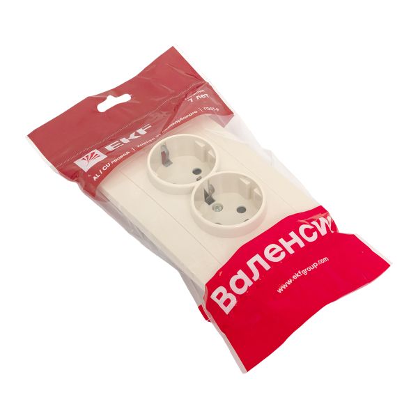 Валенсия розетка 2-местная с/з 16А кремовая с защ. штор. EKF