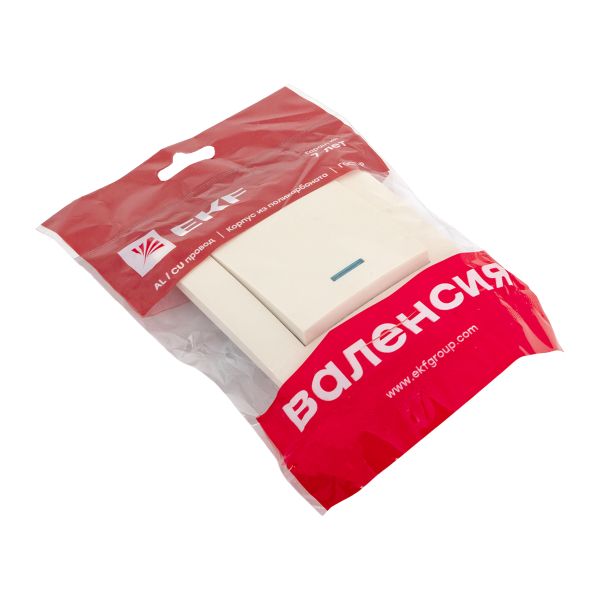 Валенсия выключатель 1-кл. 10А кремовый с индикатором EKF