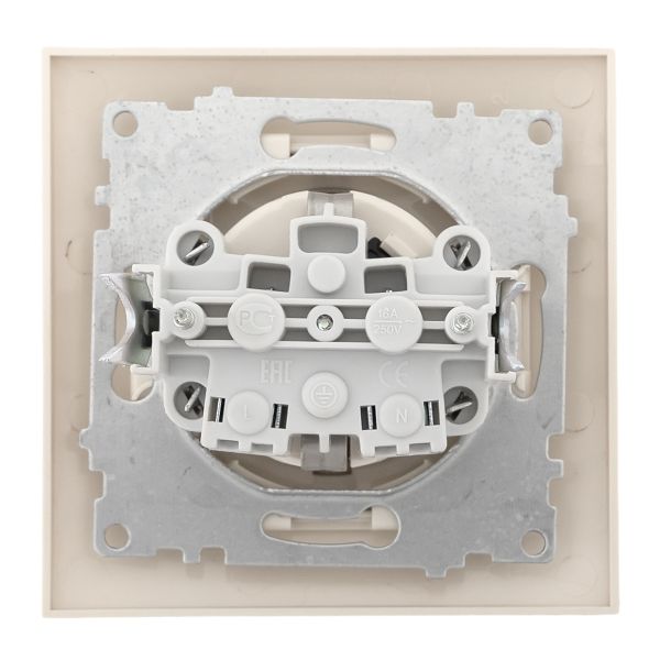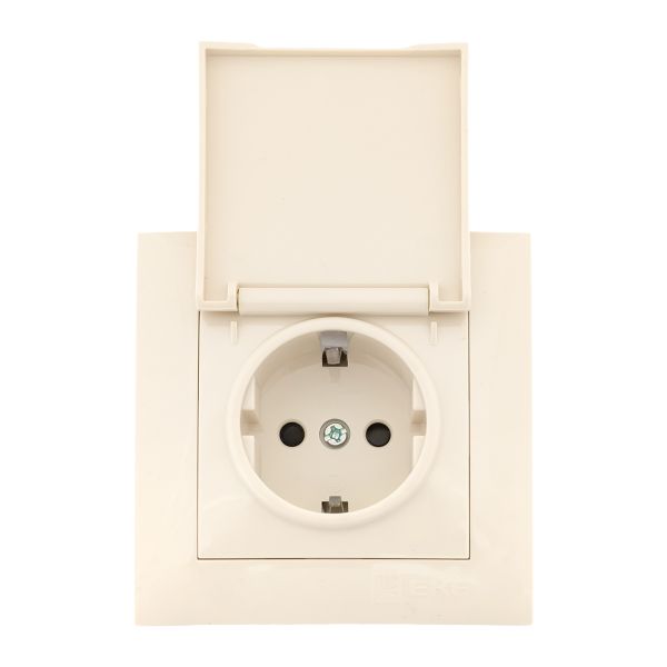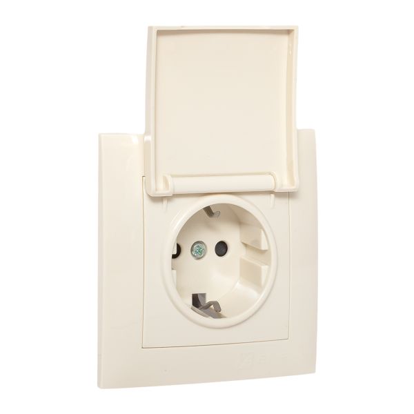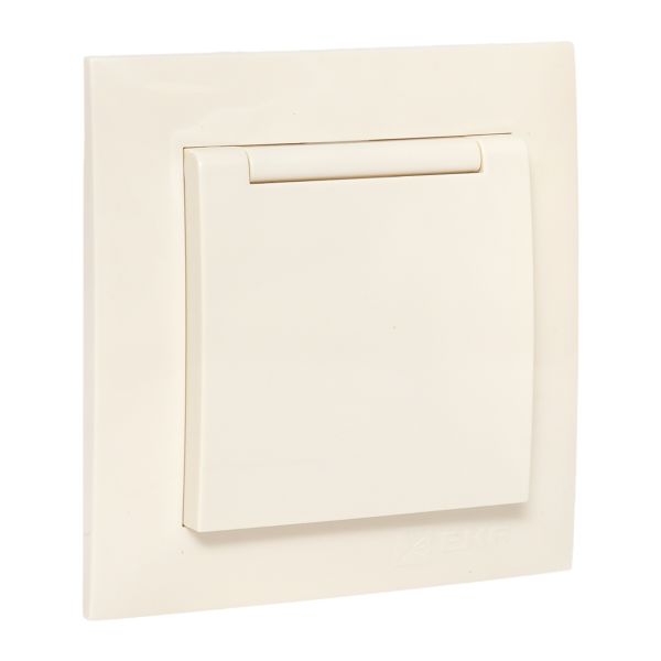 Валенсия розетка 1-местная с/з 16А кремовая с крышкой и защ. штор. EKF