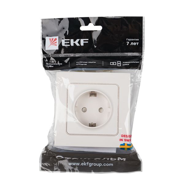 Стокгольм Розетка 1-местная с/з 16А автоматические клеммы белая с защ. штор. EKF