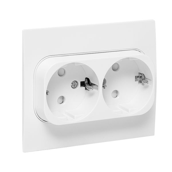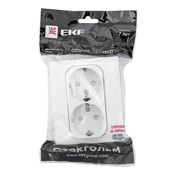 Стокгольм Розетка 2-местная с/з 16А автоматические клеммы белая с защ. штор. EKF
