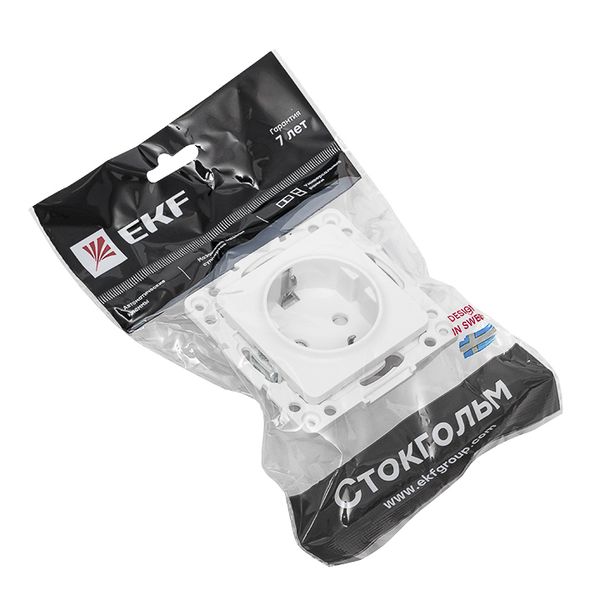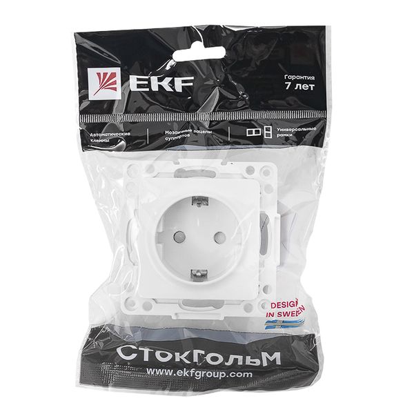 Стокгольм Механизм Розетки 1-местной с/з 16А автоматические клеммы белый с защ. штор. EKF