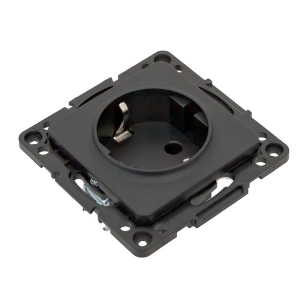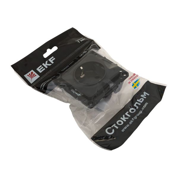 Стокгольм Механизм Розетки 1-местной с/з 16А автоматические клеммы черный с защ. штор. EKF