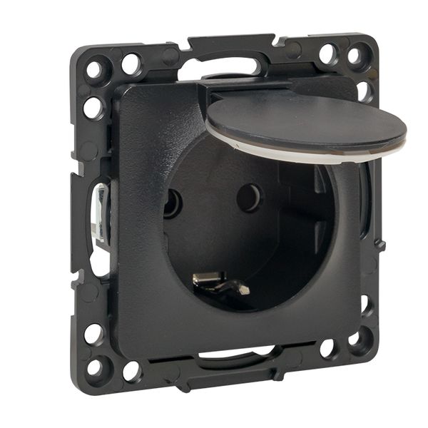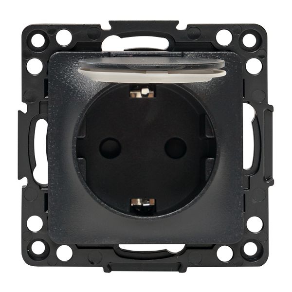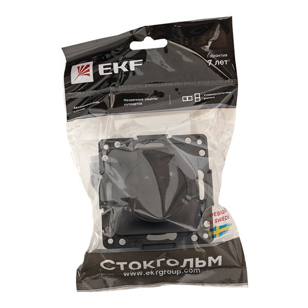 Стокгольм Механизм Розетки 1-местной с/з 16А автоматические клеммы черный с крышкой и защ. штор. IP44 EKF