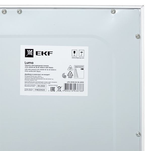 Панель светодиодная тонкая ДВО-4008-W 36Вт 6500К белая без драйвера 595x595 EKF