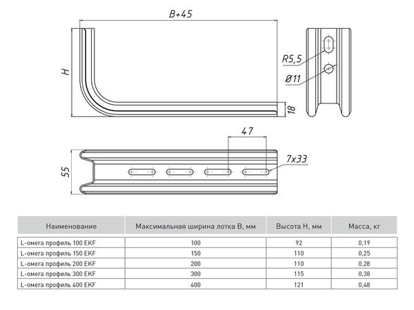 "Омега профили предназначены для легких нагрузок и могут быть смонтированы как к стене, так и к потолку. Они обеспечивают надежный и быстрый монтаж металлических кабельных лотков любой ширины. Имеют удобную перфорацию под анкерные болты или шпильки М10. Стандартная толщина профилей - 1,5 мм.