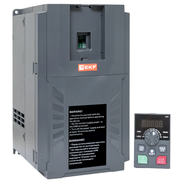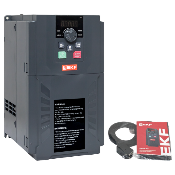 Преобразователь частоты PRO-Drive 150 EKF (далее преобразователь) предназначен для управления скоростью вращения электродвигателей, применяемых в широком спектре промышленного оборудования. Преобразователь обеспечивает точное поддержание скорости вращения или момента на валу двигателя в зависимости от внешних факторов. Преобразователи соответствуют требованиям ГОСТ IEC 61800-5-1, ГОСТ IEC 61800-3.