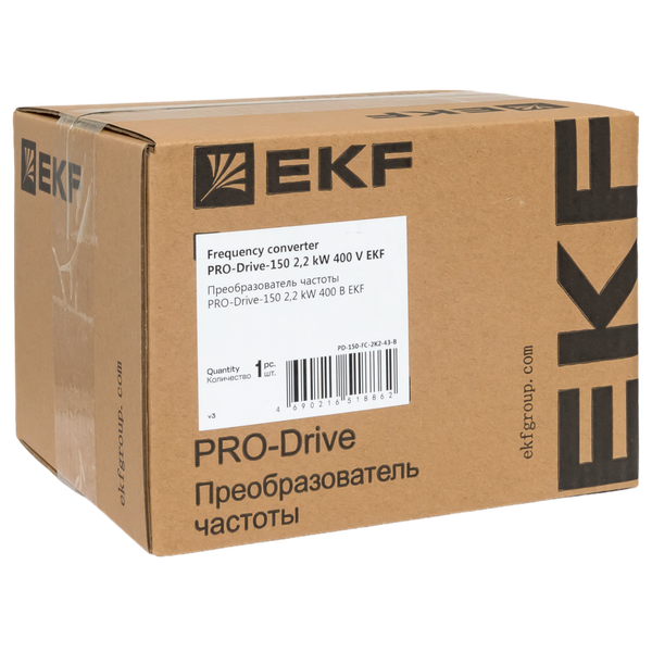 Преобразователь частоты PRO-Drive 150 EKF (далее преобразователь) предназначен для управления скоростью вращения электродвигателей, применяемых в широком спектре промышленного оборудования. Преобразователь обеспечивает точное поддержание скорости вращения или момента на валу двигателя в зависимости от внешних факторов. Преобразователи соответствуют требованиям ГОСТ IEC 61800-5-1, ГОСТ IEC 61800-3.