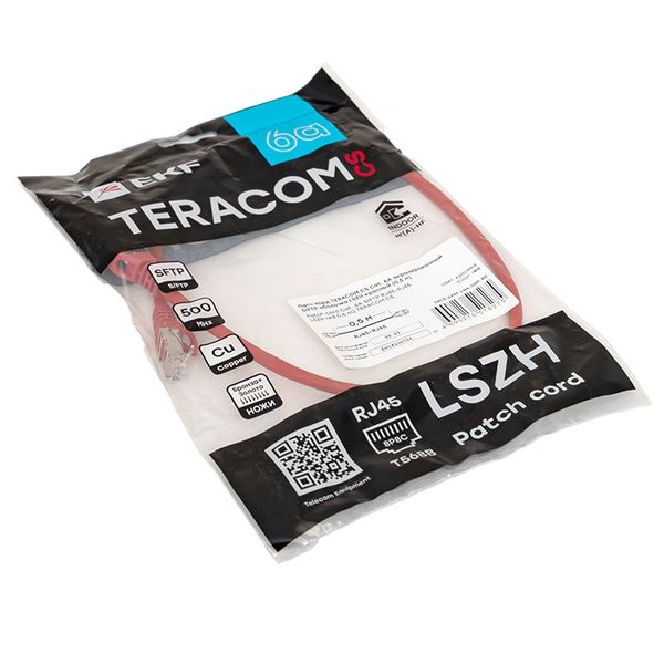 Патч-корд TERACOM CS Cat.6A экранированный S/FTP оболочка LSZH красный (0,5м)