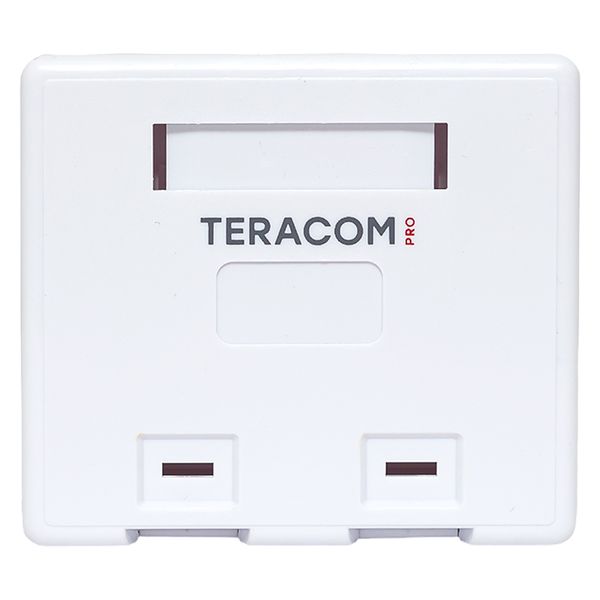 Корпус настенной розетки TERACOM PRO на 2 модуля Keystone со шторками и маркерами белый