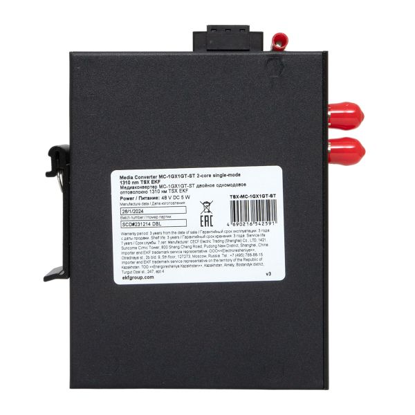 Медиаконвертер 10/100/1000Base-TX в 1000Base-X, разъем ST, двойное одномодовое оптоволокно, 1310нм TSX EKF