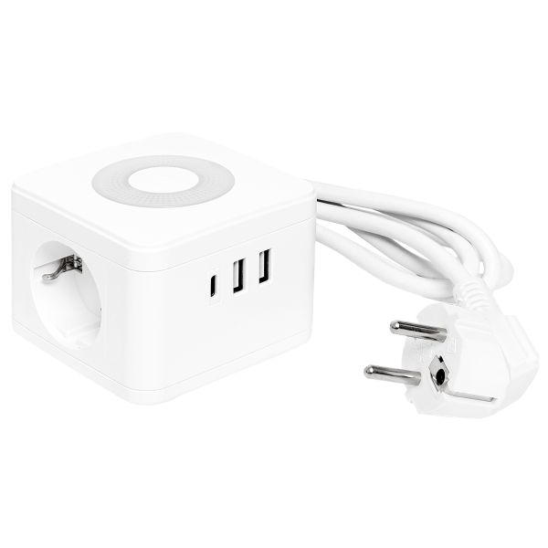 Удлинитель "Куб" 2 гнезда 2USB 2,4А+Type C + Ночник 1,3 метра 1мм2