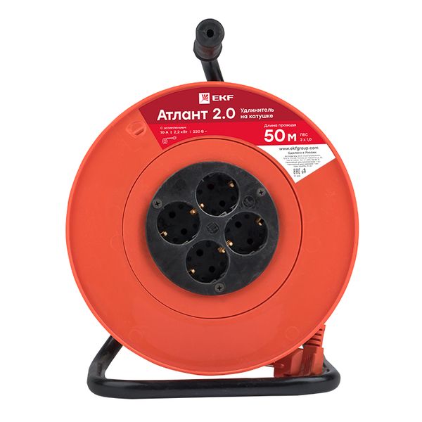 Удлинитель на катушке "Атлант 2.0" 4 гнезда 50м с заземлением ПВС 3*1,0 10А/2,2кВт PROxima