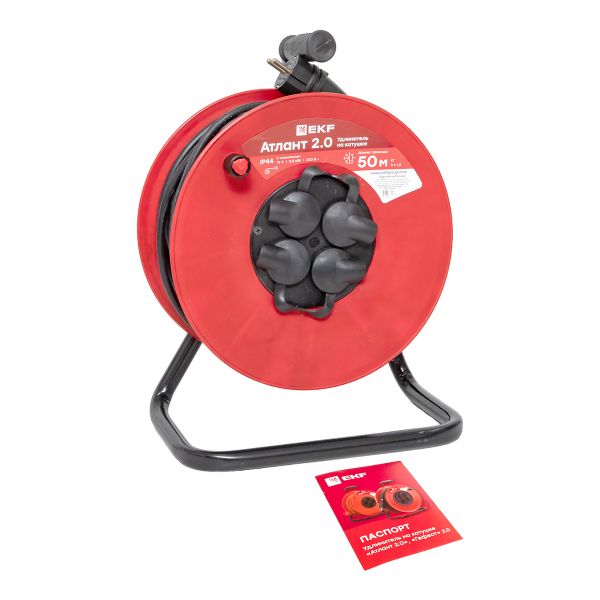 Удлинитель на катушке "Атлант 2.0" 4 гнезда 50м с заземлением КГхл 3*1,5 16А/3,5кВт IP44 PROxima