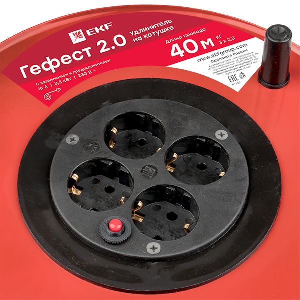 Удлинитель на катушке "Гефест 2.0" 4 гнезда 30м с заземлением и предохранителем КГхл 3*1,5 16А/3,5кВт PROxima