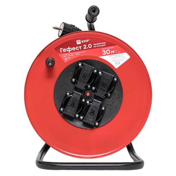 Удлинитель на катушке "Гефест 2.0" 4 гнезда 30м с заземлением и предохранителем КГхл 3*2,5 16А/3,5кВт IP44 PROxima