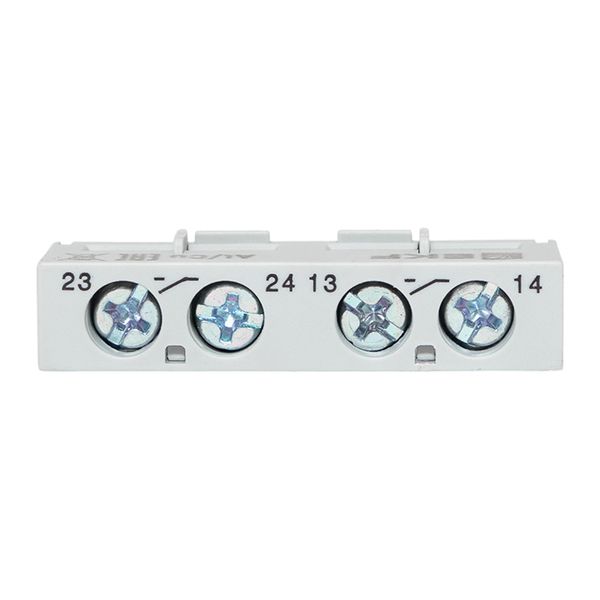 Дополнительный аксессуар для автомата пуска (защиты) двигателя. Фронтальный блок с двумя парами нормально разомкнутых (НО/NO) контактов. Обе пары контактов замыкаются при включении АПД. Используется когда нужно продублировать сигнал "ВКЛ" или управлять двумя разными цепями одновременно (например, сигнальная лампа). Устанавливается на АПД спереди. Используется для АПД-32 и GV2P.