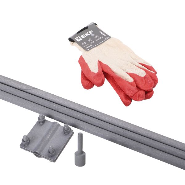 Комплекты заземления предназначены для устройства защитного заземления электроустановок и оборудования, организации заземления молниезащиты. Данный комплект включает в себя: стальные стержни в термодиффузионном цинковании D=16мм длиной 1500мм - 3 шт., муфта соединительная - 2 шт., зажим для подключения проводников, винт ударный и гайка для забивания, перчатки для удобства монтажа, паспорт на изделие.