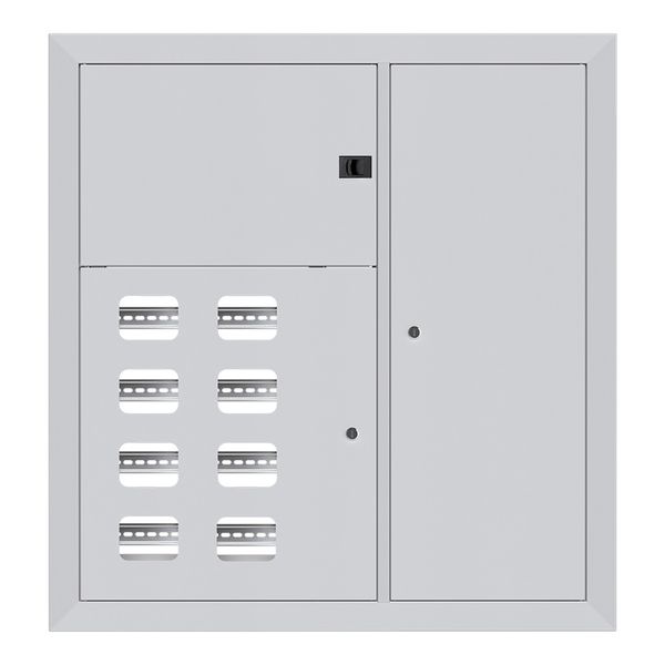 Щит этажный серии ЩЭ PROXIMA предназначен для сборки щитов учета электроэнергии и распределения с использованием счетчиков и модульной аппаратуры, для защиты линий от КЗ и перегрузок, а также для установки слаботочных сетей (интернет, ТВ, телефон). Расположение слаботочного отсека - справа. Максимальный размер счетчика для 8-квартирных щитов — 130х155х110 мм. Поставляется полностью готовым к монтажу, с установленными шинами для подключения магистральных линий и PE-шинами, что упрощает разводку. Монтажная рама съемная, что упрощает и ускоряет установку счетчиков и модульной аппаратуры. Цвет покрытия - RAL7035 (светло-серый). Защита корпуса обеспечивается полиэфирным порошковым покрытием с фосфатированием, что защищает от коррозии, ультрафиолета, механических повреждений, химических веществ и атмосферных условий. Подходит для жилых многоквартирных домов (новостройки и реконструкция), общежитий, гостиниц и офисных центров.