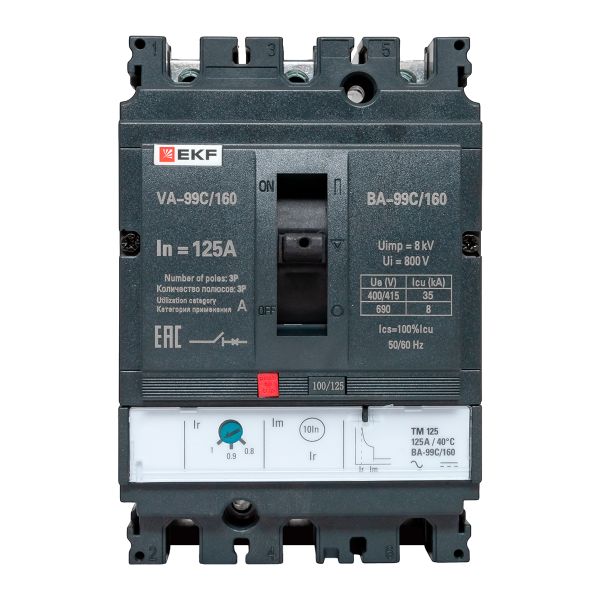 Выключатель автоматический в литом корпусе ВА-99C 160/125А 3P 35кА с термомагнитным расцепителем EKF