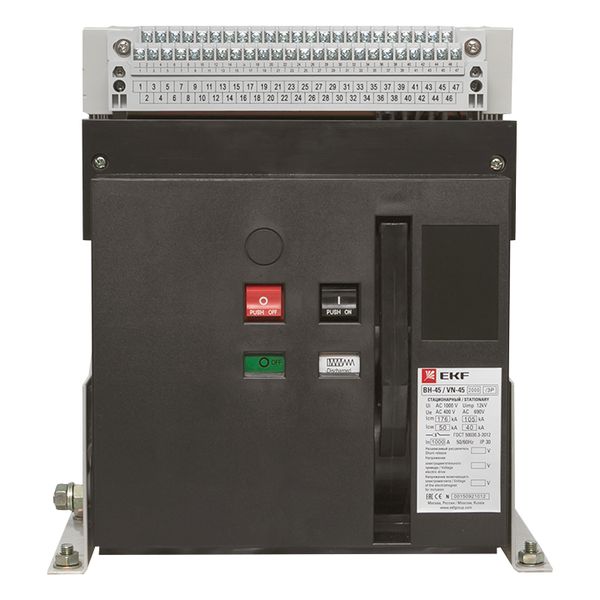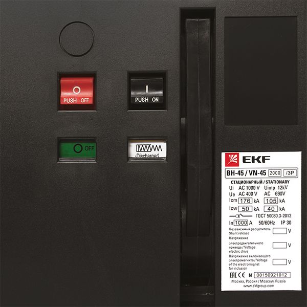 Автоматические выключатели серии BН-45 EKF являются воздушными выключателями с механизмом свободного расцепления и оперирования контактами посредством механизма с пружинным накопителем энергии. Выключатель выполнен в виде механической конструкции, смонтированной на жесткой раме. Основные органы управления и индикации выведены на лицевую панель.