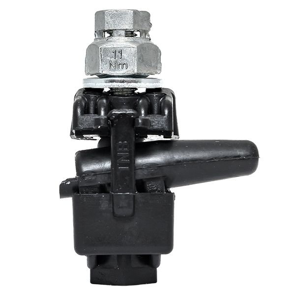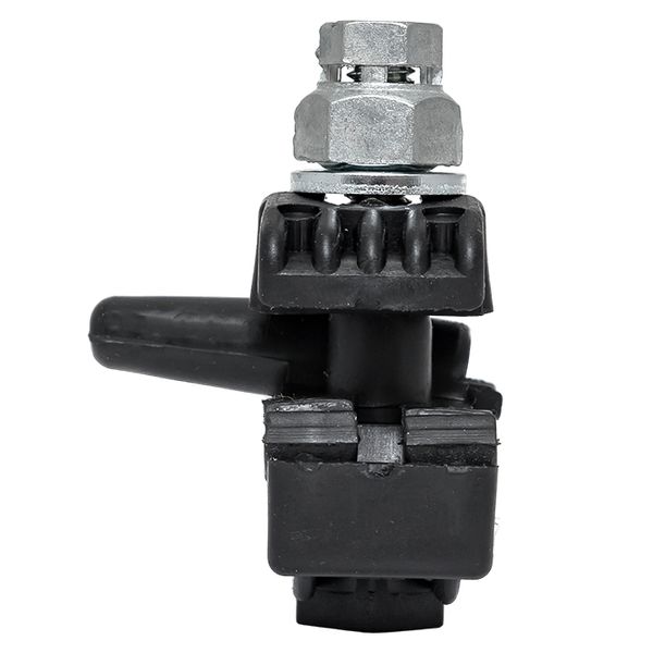 Зажим типа p-6x-95 предназначен для герметичного электрического соединения и ответвления абонентских проводов, а также проводников освещения от магистрали. Контакт с изолированным проводом обеспечивается прокалыванием изоляции. При достижении момента, необходимого для создания надежного электрического контакта проводов, происходит срыв головки болта. Контактные пластины изготовлены из алюминиевого сплава. На прокалывающие элементы нанесена контактная смазка. Болт изолирован от контактных деталей зажима. Зажим устойчив к ультрафиолетовому и солнечному излучению, высоким и низким температурам, коррозии и агрессивным атмосферным воздействиям.