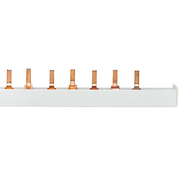 Шины соединительные представляют собой пластины, выполненные из меди (шины на 100 А – из луженой меди), закрепленные в корпусе из диэлектрического материала, не поддерживающего горение, и выпускаются стандартной длиной 1 метр. Шины соединительные делятся на два типа - FORK («вилка») и PIN («гребенка») на номинальные токи 63 и 100 А. Могут быть выполнены в одно- двух- трех- и четырехполюсном исполнений.