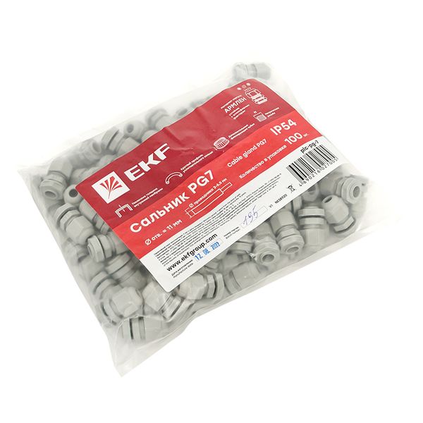 Сальник PG7 IP54 (100 шт) d отв. 13 мм / d провод. 3-6,5 мм EKF PROxima