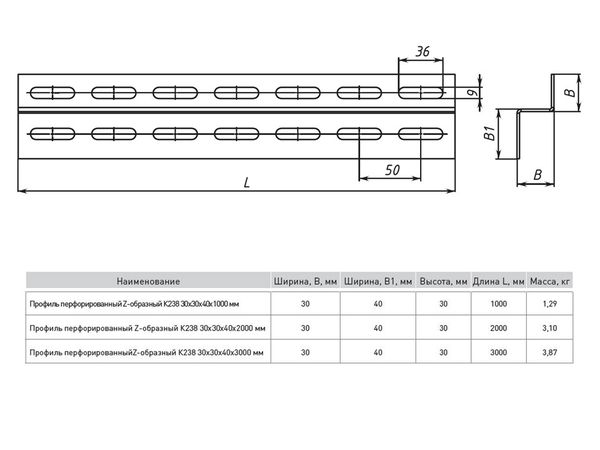Профиль перфорированный Z-образный К238 30x40x2000 мм (2 мм) EKF