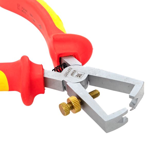 Стриппер с изолированными рукоятками для работы в электроустановках напряжением до 1000 В. Инструмент предназначен для снятия изоляции проводников диаметра 0,75…5 мм2