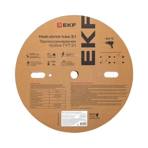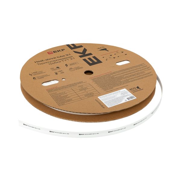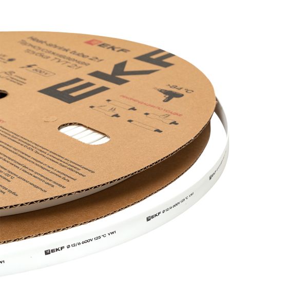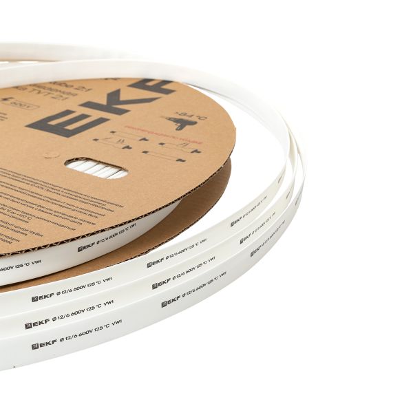 Термоусаживаемая трубка ТУТ нг 12/6 белая рулон EKF PROxima
