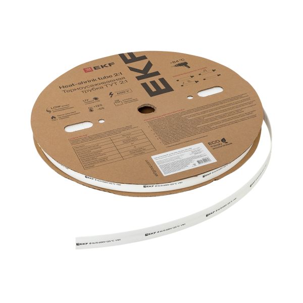 Термоусаживаемая трубка ТУТ нг 16/8 белая рулон EKF PROxima