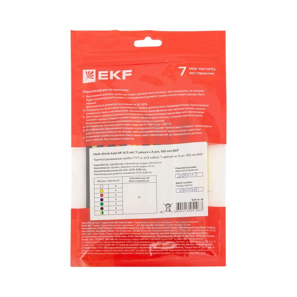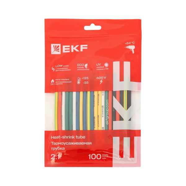 Термоусаживаемая трубка ТУТ нг 4/2 набор:7 цветов по 3шт. 100мм. EKF PROxima