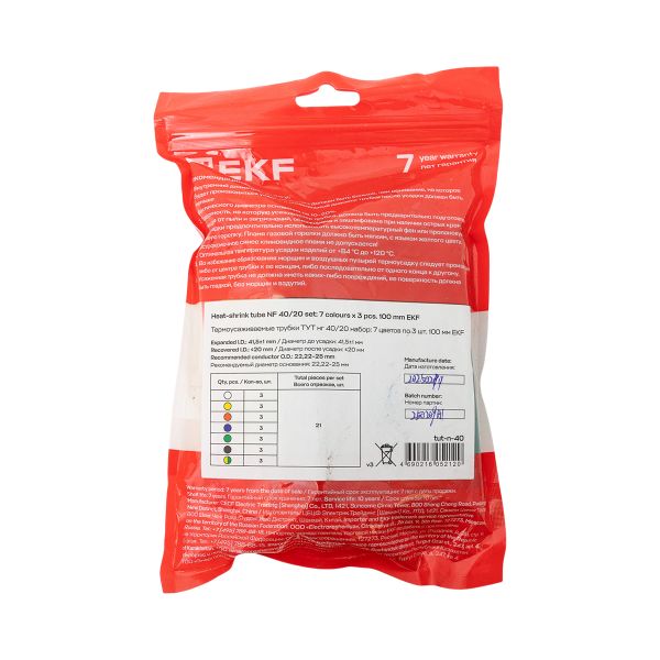 Термоусаживаемая трубка ТУТ нг 40/20 набор:7 цветов по 3шт. 100мм. EKF PROxima
