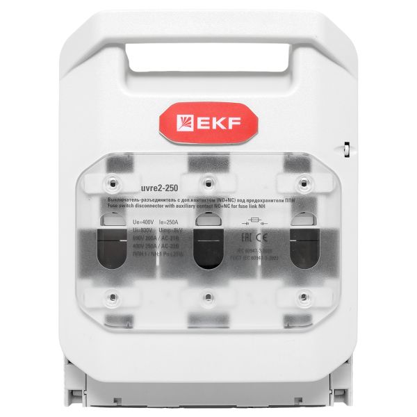 Выключатель-разъединитель УВРЭ v2 250А с дополнительным контактом (NO+NC) откидного типа под предохранители ППН (габ.1) EKF